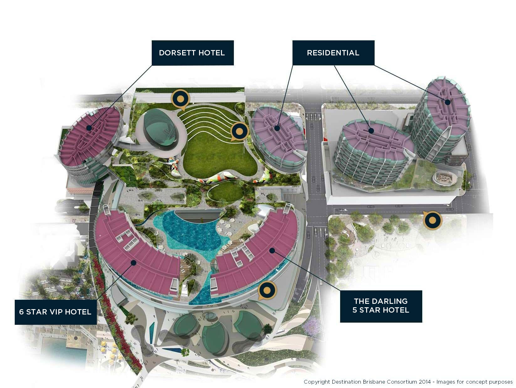 Destination Brisbane, a consortium by Echo Entertainment, Chow Tai Fook and Far East Consortium have unveiled their bid proposal for Brisbane’s Queens Wharf Integrated Resort development.