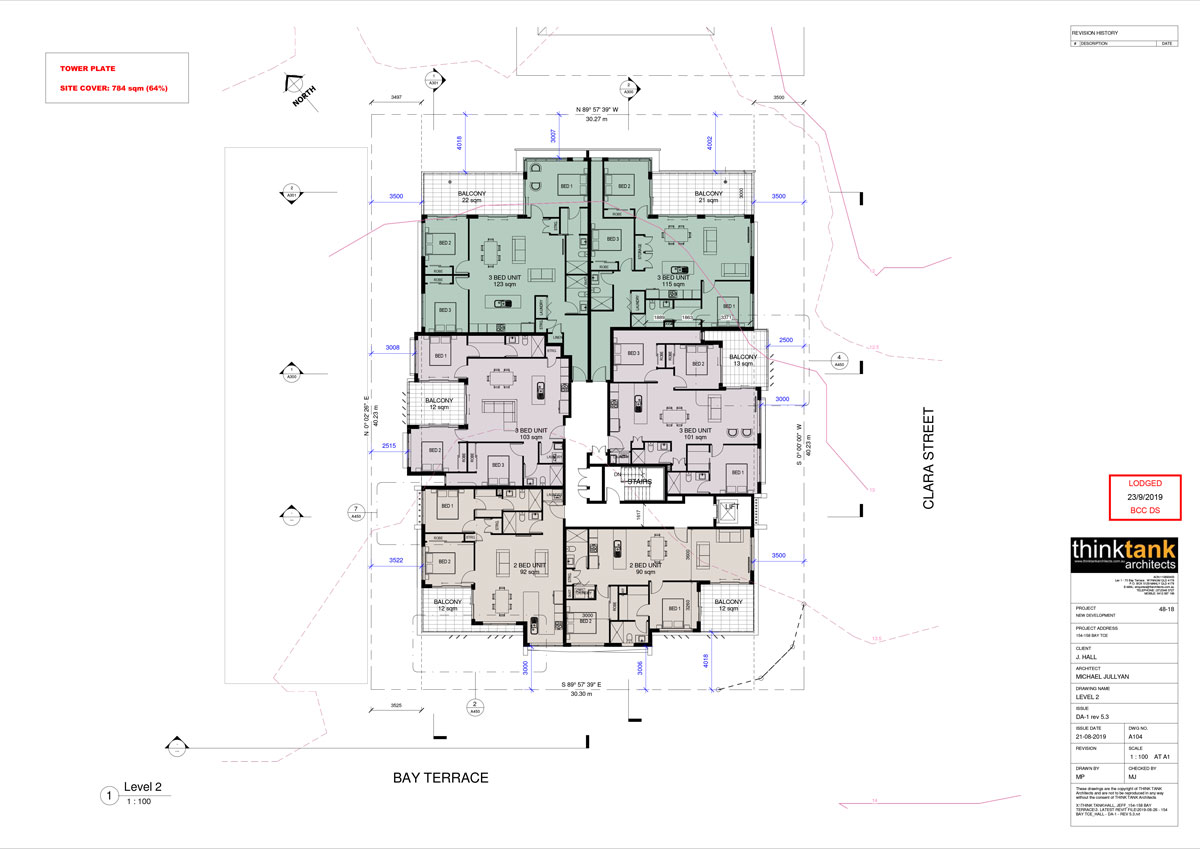 According to the architects, Think Tank, the design responds to its high street context with scale matching the adjacent Bay Terrace office tower development approval.