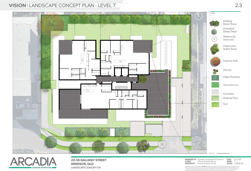 The proposed dwelling units have been carefully designed to ensure residents are afforded a high level of amenity. The units are appropriately oriented to capitalise on access to natural sunlight and breeze, and large private open space areas promote outdoor subtropical living. The allocation of landscaping and deep planting throughout the site softens the built form, contributes positively to the amenity and the subtropical climate and presents an integrated landscape character outcome to Gallway Street.