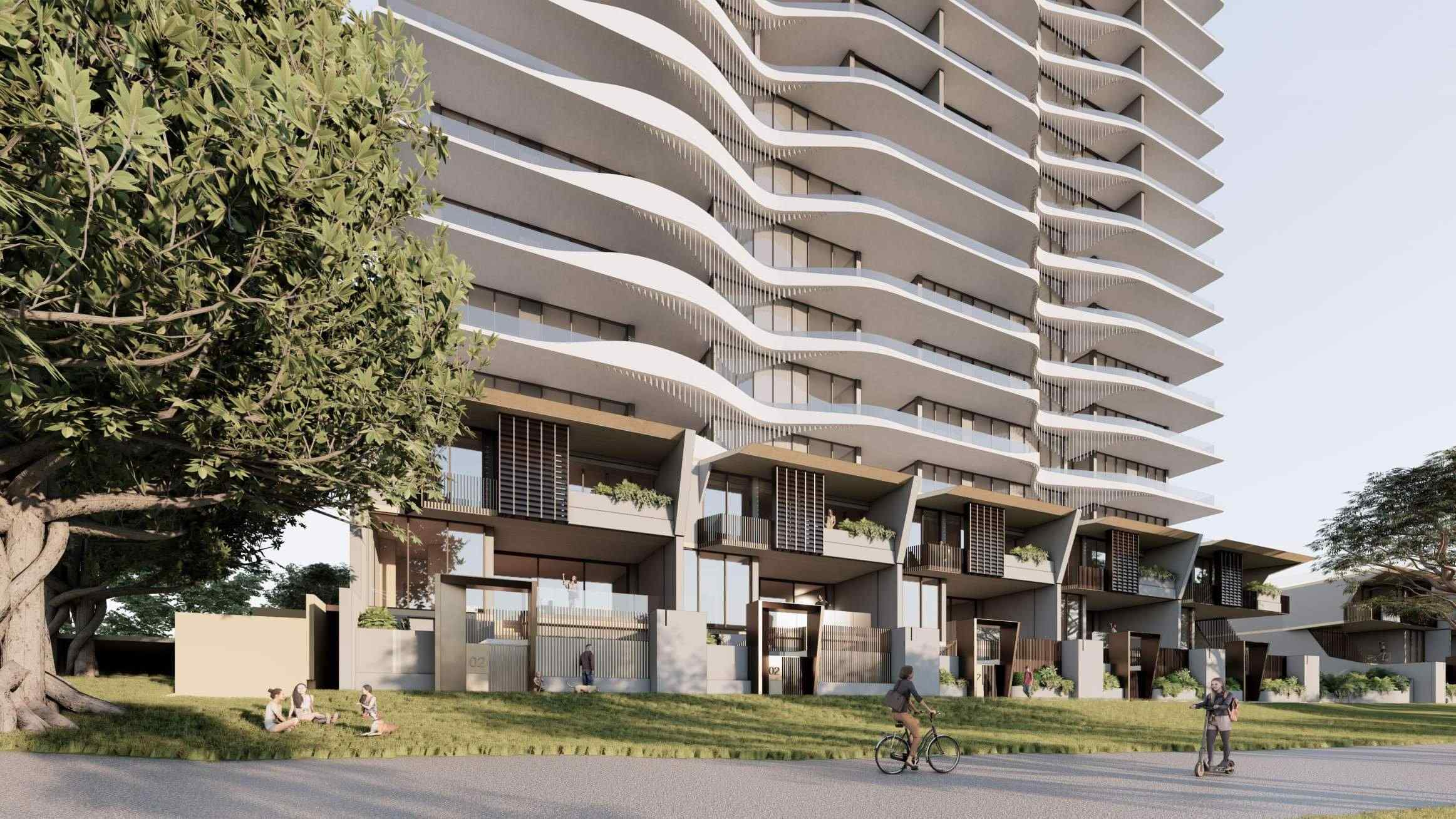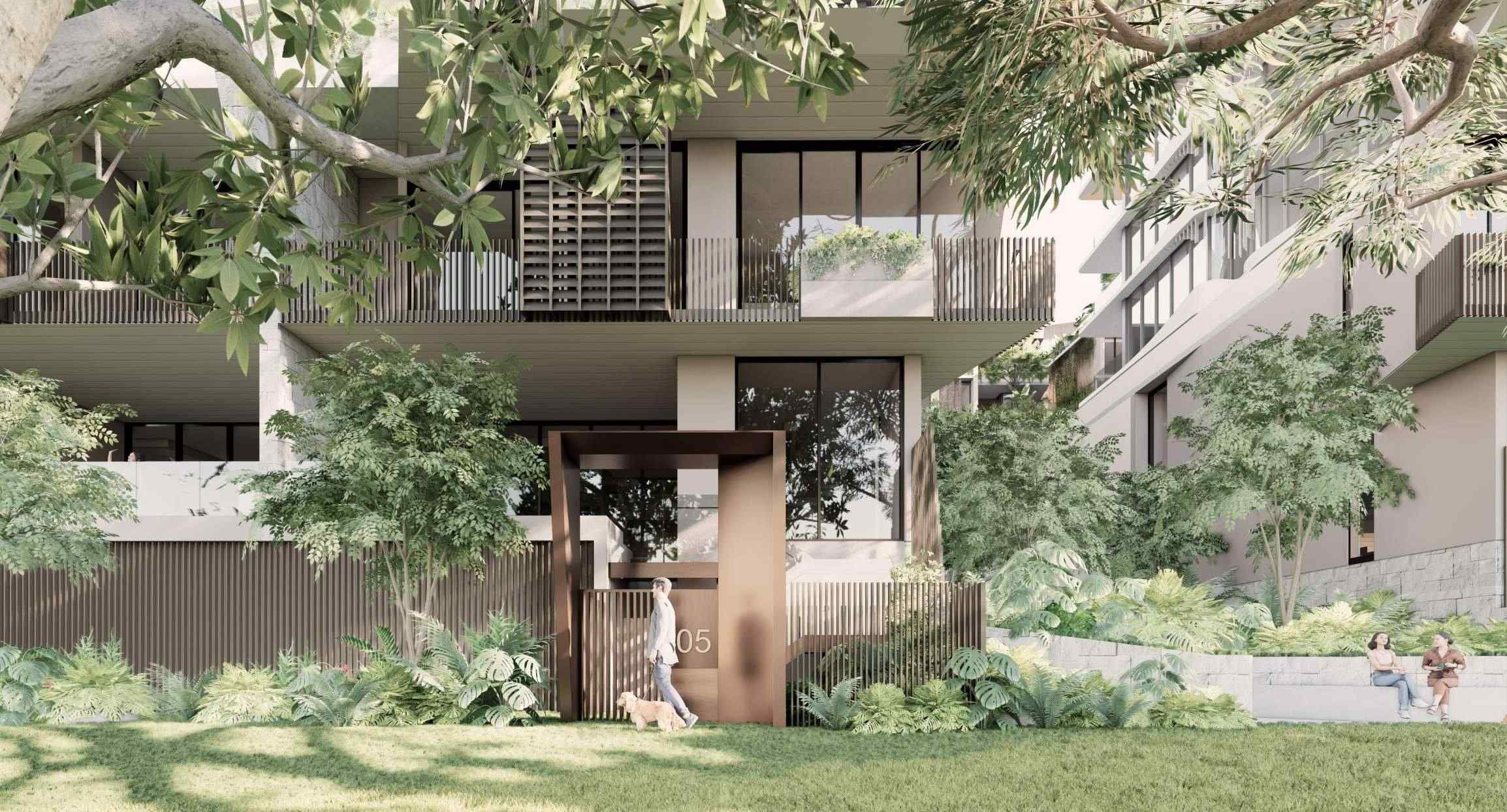 Sustainability: | – Rooftop Solar: Integrated bi-solar rooftop planters – Energy Efficiency: Passive design and façade shading – Waste Management: Dedicated refuse areas with compactor and baler as well as seperate recycling chute which encourages resident recycling – Water Conservation: Stormwater treatment and riparian restoration – Green Landscaping: Retention of heritage fig trees and new podium planting – Active Transport Facilities: Pedestrian laneway, bike parking, riverside connections |