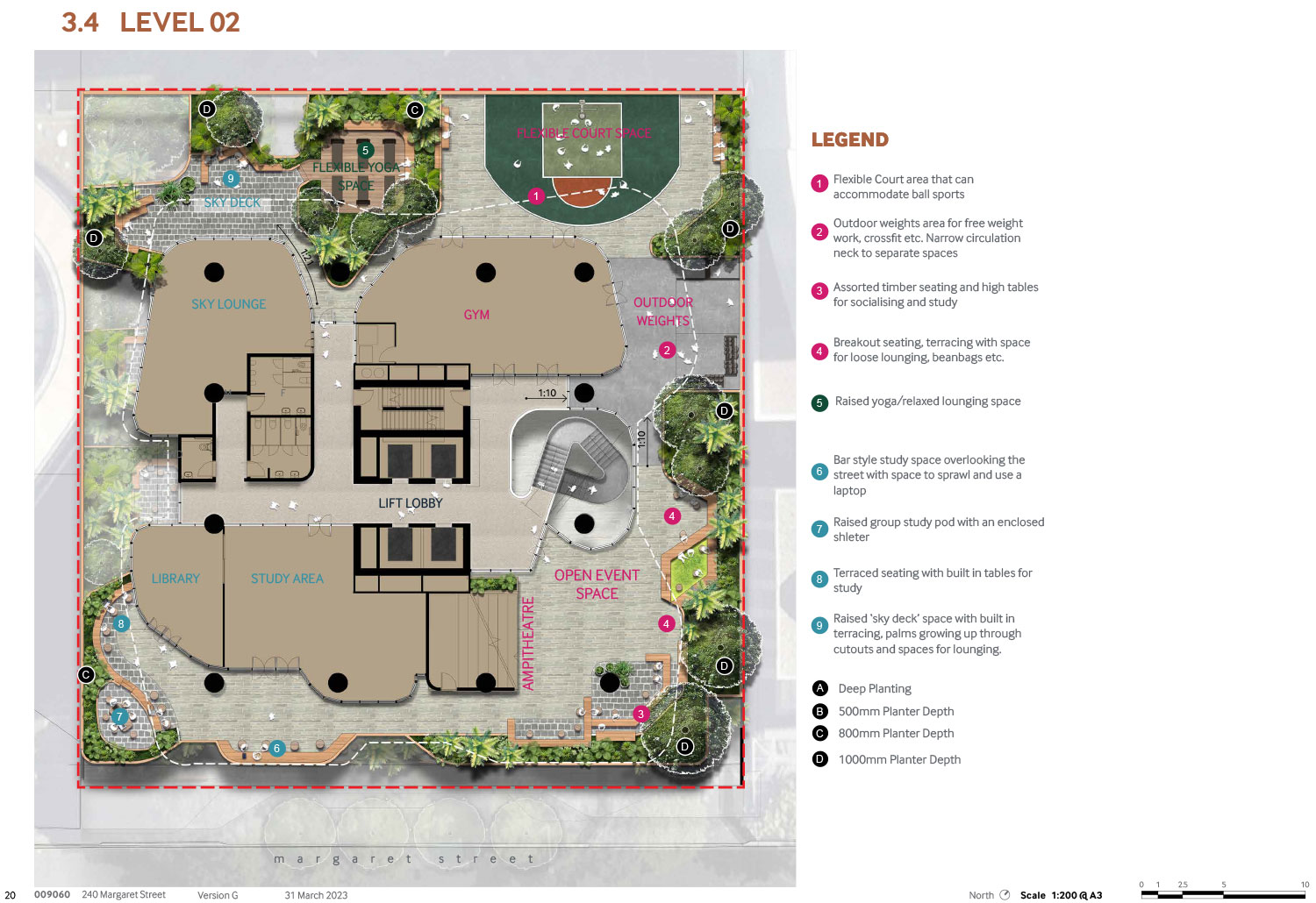“The 240 Margaret Street PBSA proposal will inject a high-density accommodation offering into this burgeoning precinct of the city. The PBSA format as an operating model means longevity of the base building is a primary consideration and has influenced both design and materiality. It also reinforces the long-term commitment to the vibrancy and activation of the communal and retail offers of the proposal to maintain the overall attractiveness of the facility and its competitive edge in the market.