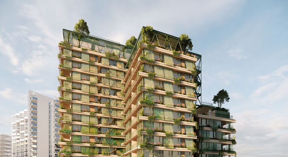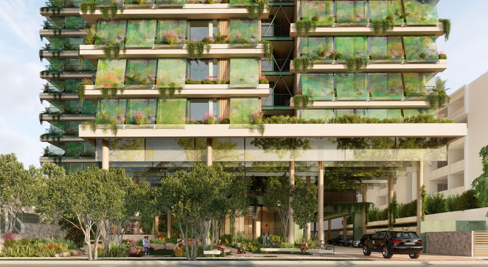 - Sustainability: Extensive sustainability initiatives including PV panels, recycling chute, irrigation harvesting and EV charging capability have been incorporated into the design at an early stage. The design of the tower floorplates responds to the Buildings that Breathe criteria through appropriate building orientation, shading devices, and living greenery. All units benefit from well-proportioned living areas and balconies that create an indoor/outdoor living space and maximize access to natural light and ventilation.